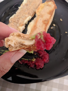 Cómo sugerencia de presentación un poco de guacamole y mermelada sin azúcar para contrastar con el sabor salado del queso.
